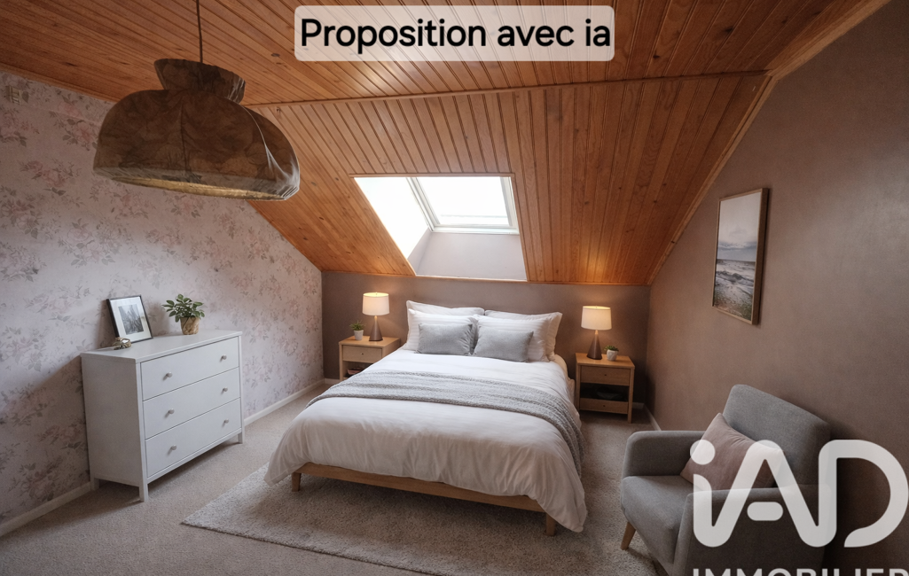 A l'étage : Deux chambres de 9 et 10m², une salle de bain de 5 m², d'un WC séparé.