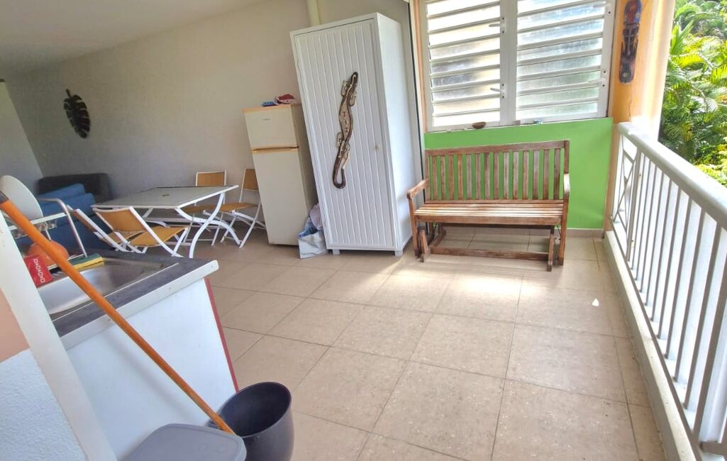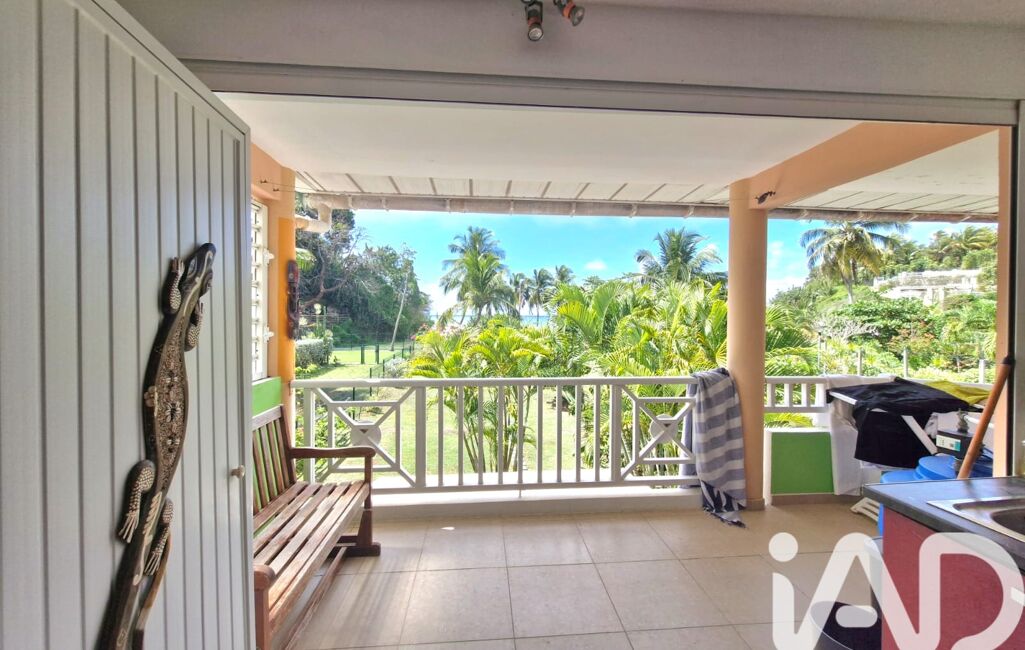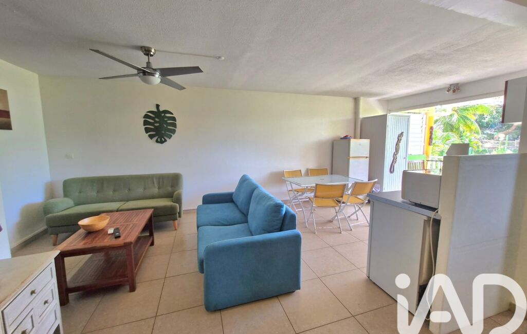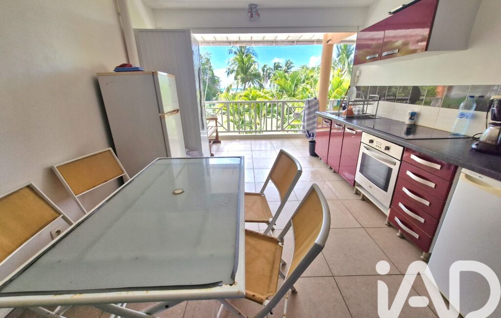 iad France - Severine Cau vous propose: Au 1er étage, appartement F2 d'environ 42m2 dans une résidence à Anse Vinaigri Dampierre au Gosier face à la mer. Appartement avec un grand salon et cuisine américaine ouverte sur la terrasse couverte. Très belle vue mer depuis l'espace à vivre et la chambre attenante. Placards de rangements dans l'entrée avec coin bureau et placards intégrés également dans le coin TV du salon. Vendu avec un locataire en place (location meublée bail d'un an jusque décembre 2026). Une citerne d'eau de 300L sur la terrasse couverte de plus de 7m2 et une place de parking complètent ce bien. Très belle vue mer depuis l'appartement où vous entendez le bruit du ressac ! Plage à pied juste en face avec accès depuis la résidence. Appartement très bien situé à Dampierre proche des grands axes et de toutes les commodités. L'idéal pour des amoureux de la mer, des primo accédents ou pour un investissement locatif. A très vite pour une visite.