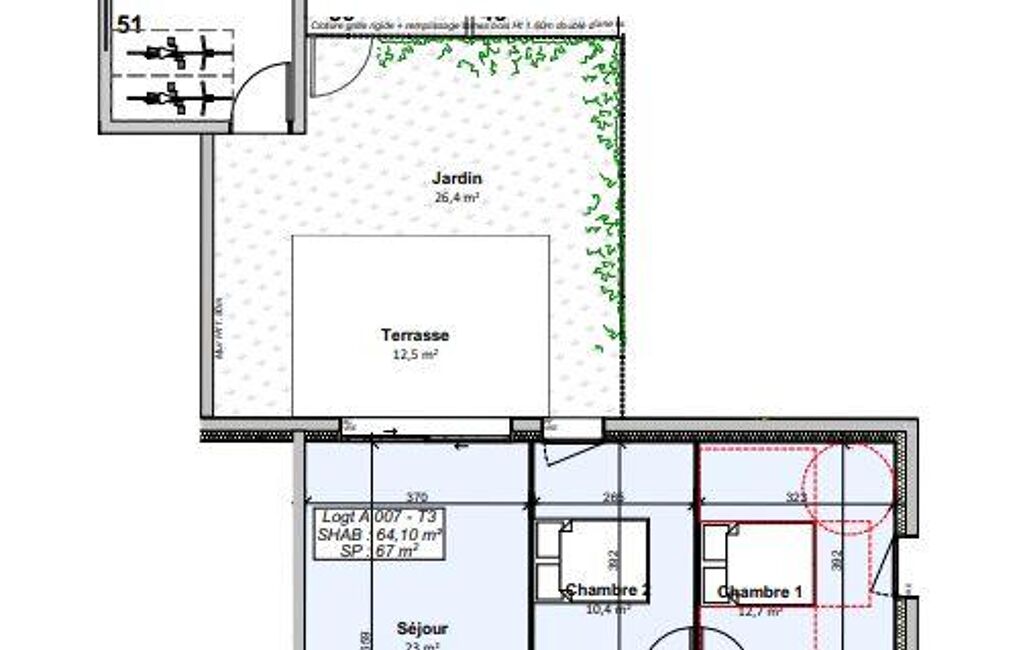 - Surface habitable : 64 m²