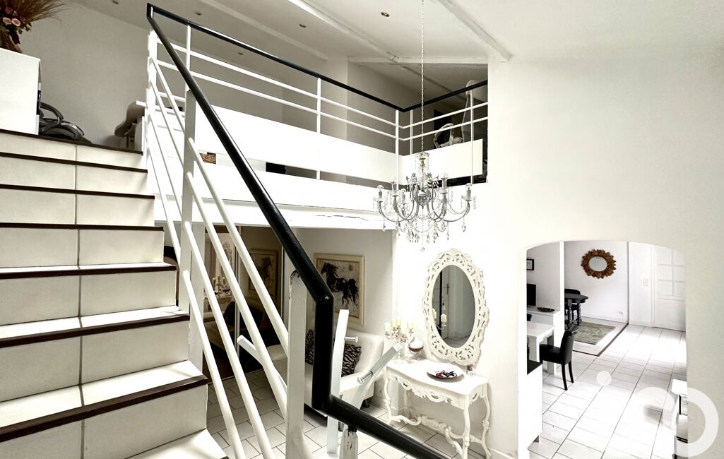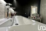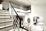 A gauche de la réception, couloir avec WC et buanderie/chaufferie, puis accès au salon de 35m² environ. Au dessus du salon, avec accès par un escalier, une seconde suite parentale composée de la chambre avec des aménagements placards, et de sa SDB avec WC.