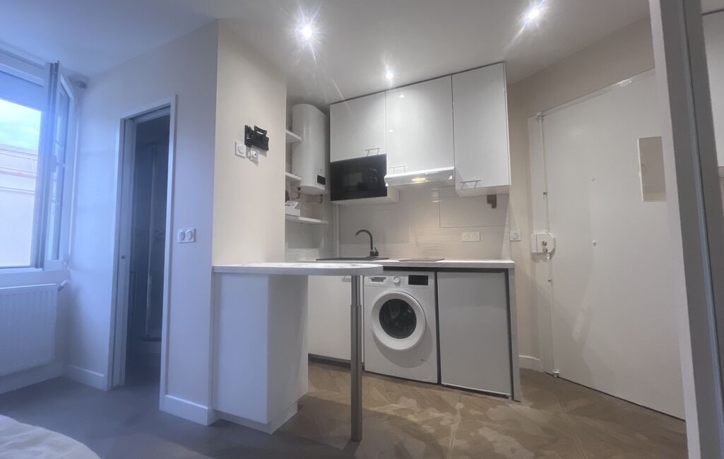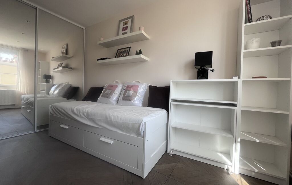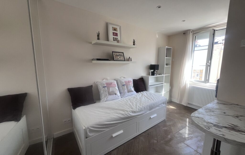 Situé au 6ᵉ étage avec ascenseur d’un immeuble sécurisé avec gardien, interphone et digicode, ce bien a été entièrement rénové par un architecte. Il se compose d’une pièce principale avec coin cuisine aménagée et entièrement équipée (four micro-ondes, plaques de cuisson, hotte, réfrigérateur, lave-linge), d’une banquette-lit, d’un bureau escamotable, d’un téléviseur, ainsi que d’une salle d’eau avec WC.