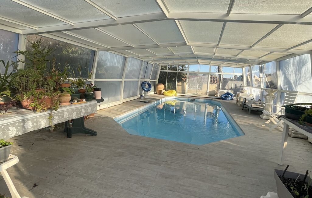 - Piscine sous dôme avec terrasse récemment refaite.