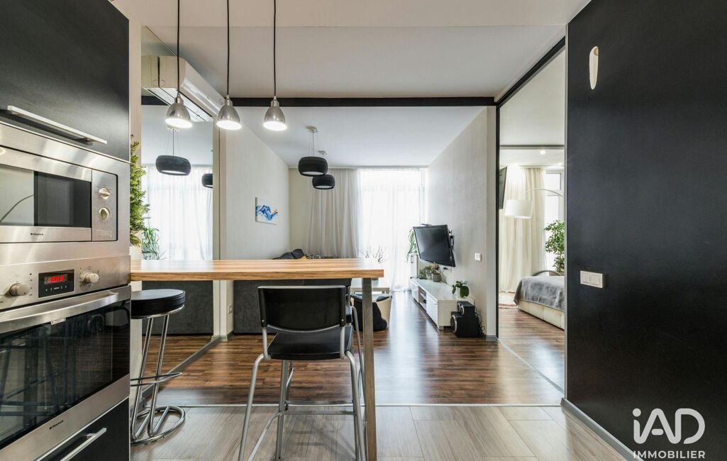 Le séjour avec cuisine se prolonge naturellement vers une terrasse d’environ 5 m² environ, apportant lumière et respiration au quotidien. L’espace de vie se prête aussi bien aux moments calmes qu’à la réception, avec une circulation fluide et lisible.
