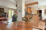 Le niveau principal accueille une belle pièce de vie lumineuse avec cuisine ouverte, donnant accès à deux terrasses exposées nord/est et sud/ouest. Cette dernière terrasse surplombe un agréable jardin arboré, accessible directement depuis le séjour.