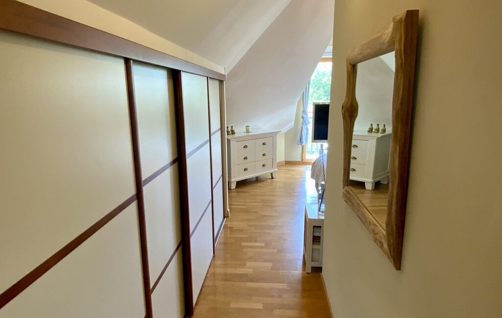 À l'étage un palier dessert 2 belles chambres avec rangement , une salle de bain avec douche et baignoire, wc séparés et une suite parentale avec un balcon exposé sud ,un espace dressing et une salle d’eau.