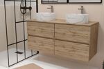 -Meuble vasque, miroir et faïence, sèche-serviette.