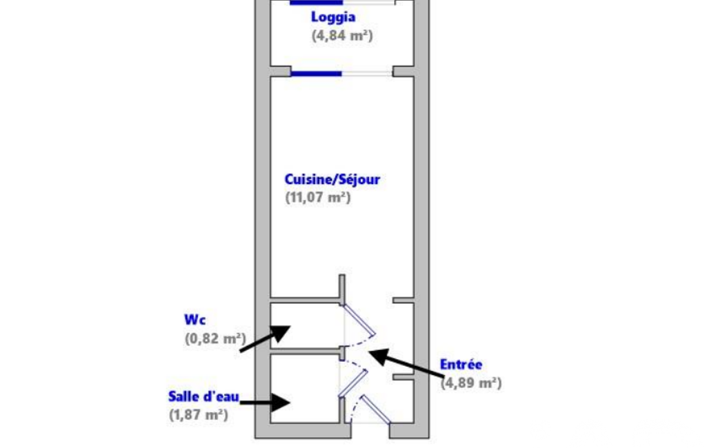 Parfaitement agencé, fonctionnel et vendu meublé, cet appartement se compose d'une entrée aménagée optimisant l'espace, d'une salle eau, d'un WC séparé et d'un séjour avec cuisine ouverte prolongé par la loggia.