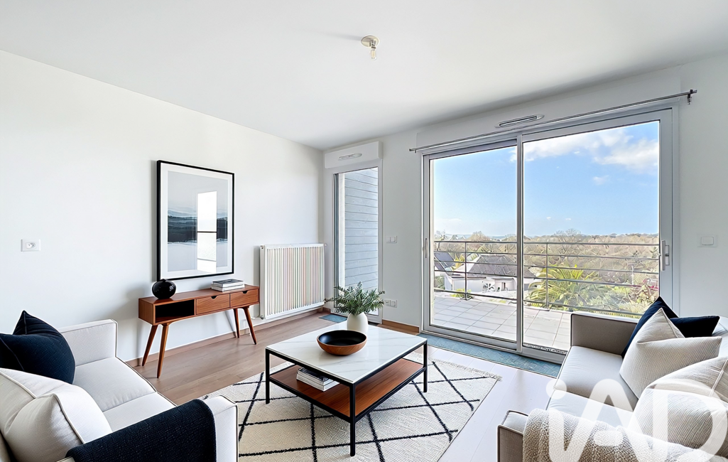 iad France - Léo Josse vous propose: À 800 m des plages et du centre-ville de Larmor-Plage, ce T3 de 58 m² très lumineux se situe au deuxième et dernier étage d’une copropriété récente en excellent état.