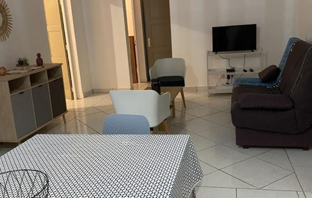 iad France - Marilyn Basson vous propose: A LOUER CHARMANT APPARTEMENT EN BAS DE VILLA DE TYPE T3 . TRÉS BON ÉTAT , LE BIEN EST MEUBLÉ ,UNE CUISINE ÉQUIPÉ , UN SALON , SALLE D'EAU ,2 CHAMBRES, TERRASSE,