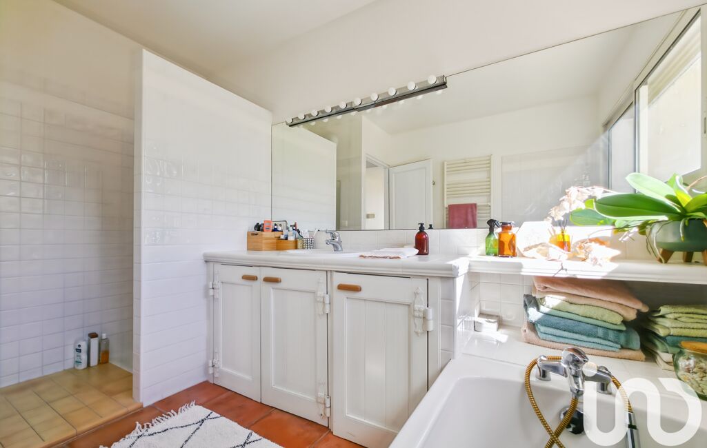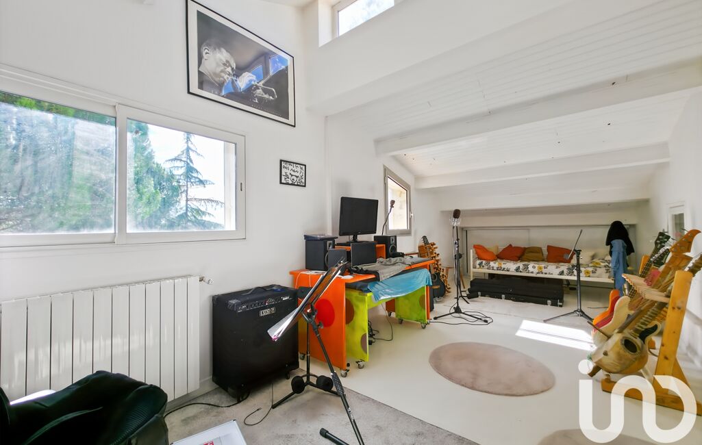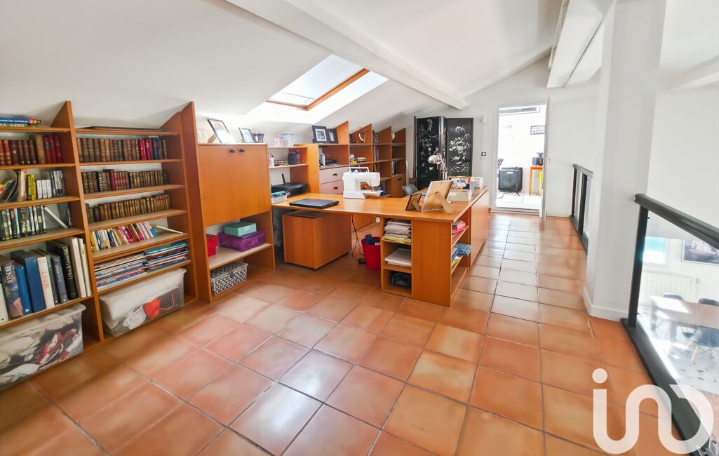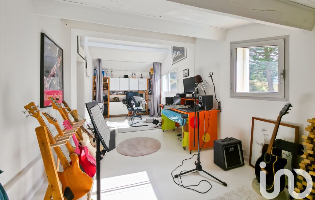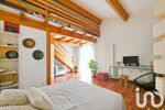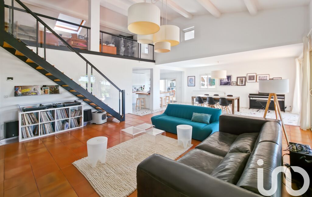 À l’étage, un bureau en mezzanine surplombe le séjour et dessert une seconde suite avec dressing et salle d’eau, ainsi que trois chambres dont deux avec mezzanine. Une spacieuse salle de bains avec baignoire, douche et WC complète ce niveau.