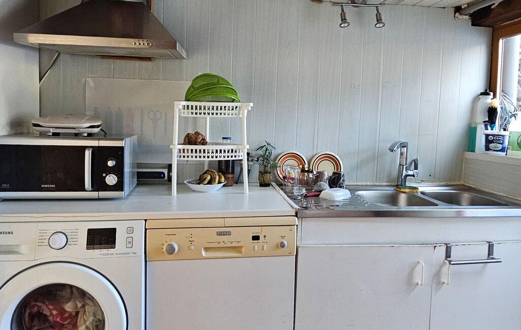 Depuis l'arrière-cuisine, vous accédez à un jardin d'environ 60 m² avec un atelier de 26 m². Celui-ci n'est pas accessible depuis la rue, ce qui le rend idéal pour le stockage ou le bricolage.