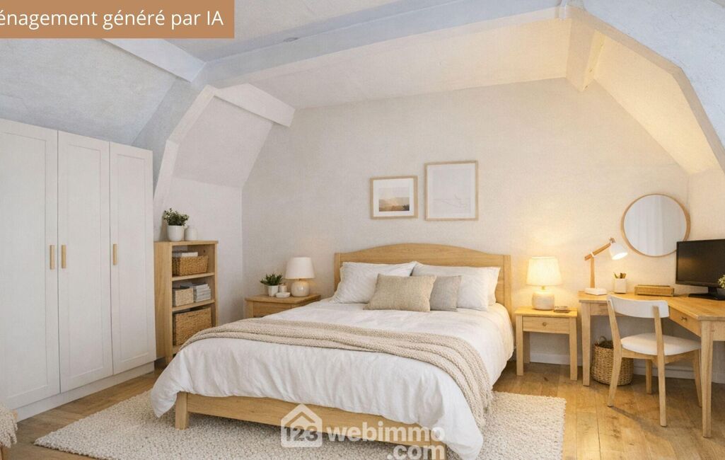 À l'étage, un palier dessert d'un côté un bureau ou une petite chambre en enfilade ainsi qu'un grande chambre. Et de l'autre, une pièce supplémentaire à aménager selon vos besoins (bureau, dressing ou espace de travail) ainsi qu'une salle de bain avec WC.