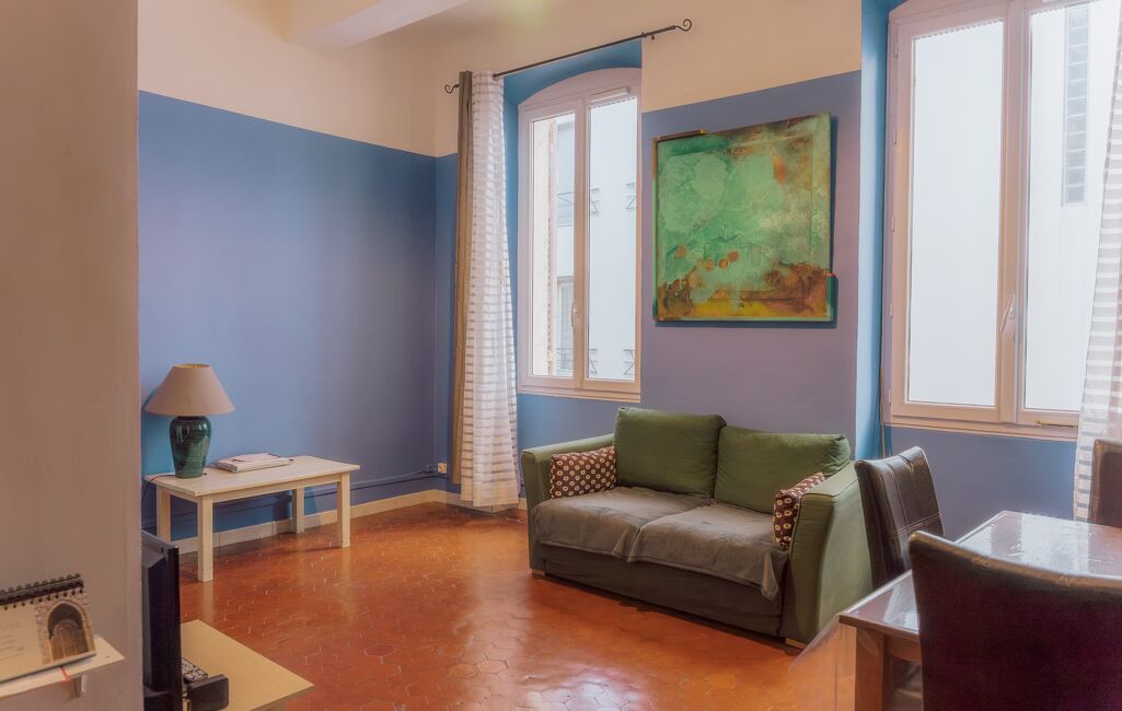 L'appartement se compose d'une chambre principale, d'un bureau pouvant parfaitement faire office de chambre d'enfant, ainsi que d'un espace de vie chaleureux, reposant sur de magnifiques tomettes d'origine qui confèrent au bien tout son caractère.