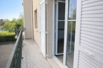 Elle s’ouvre sur un balcon, idéal pour profiter d’un extérieur au quotidien.