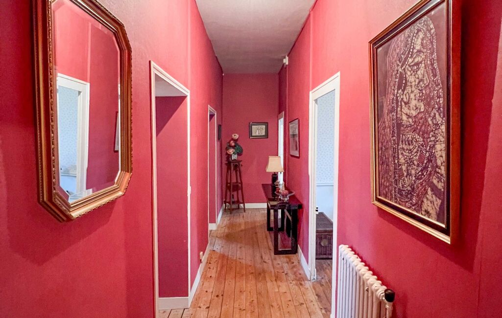 L’escalier ancien, au charme préservé, conduit à l’étage où se trouvent quatre belles chambres, dont deux disposent de leur propre point d’eau (à rénover).