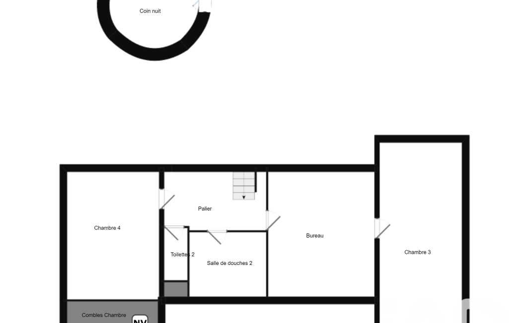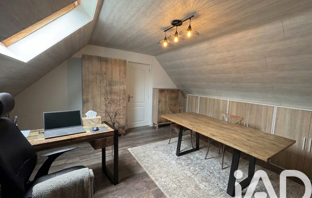 À l’étage, un premier niveau accueille un espace pouvant faire office de chambre ou de bureau.