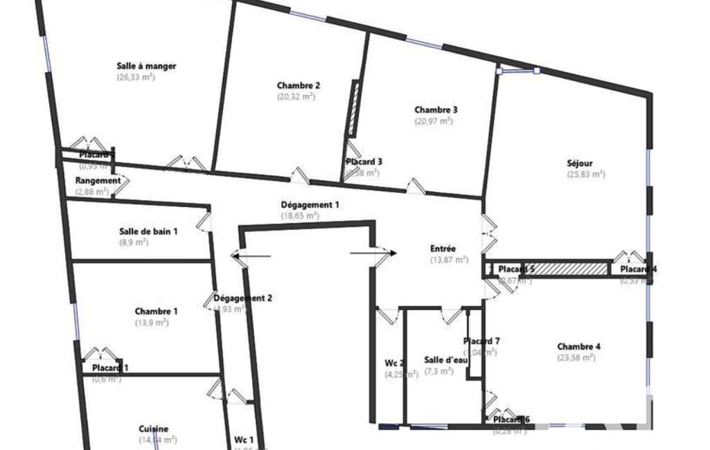 L’organisation intérieure offre de très beaux volumes et une distribution équilibrée. On y retrouve quatre grandes chambres avec rangements, un vaste salon lumineux, une salle à manger indépendante, une cuisine spacieuse, une belle entrée, deux salles de bain, deux toilettes et plusieurs espaces de rangement intégrés.
