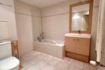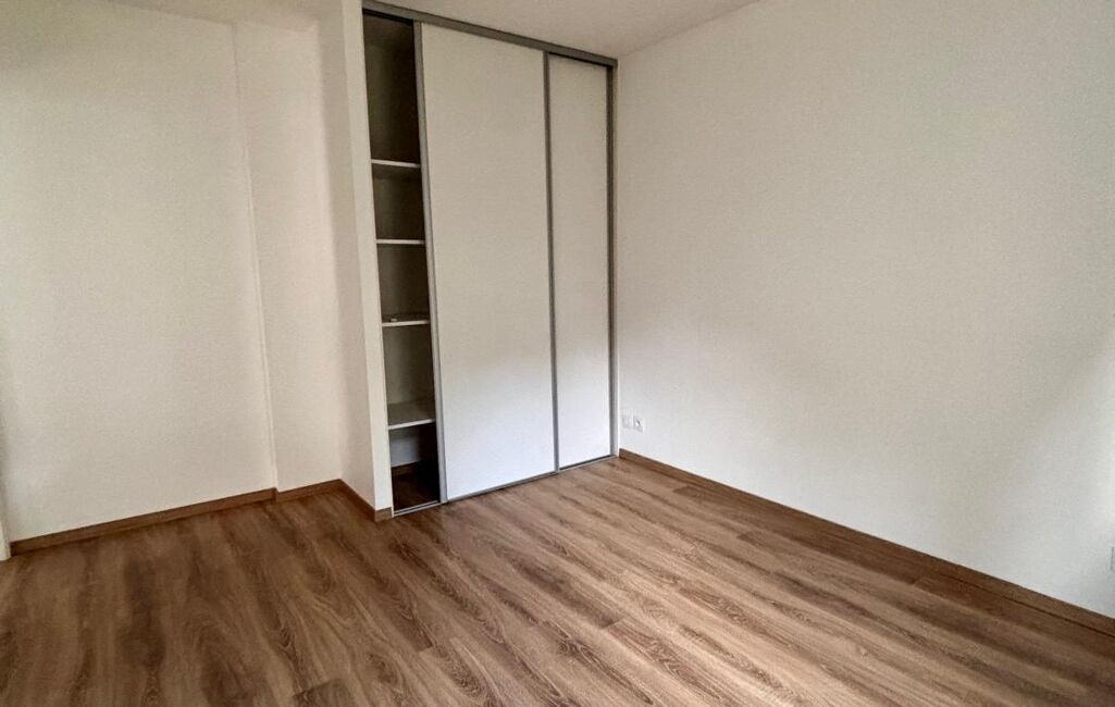 L'appartement dispose d'une belle chambre sur parquet avec placard ainsi que d'une grande salle de bain.