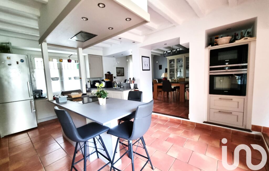 Un rez-de-chaussée baigné de lumière, articulé autour d’un espace de vie convivial avec cuisine aménagée, salle à manger et bureau