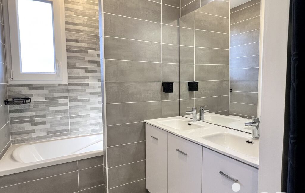 La salle de bain fonctionnelle complète le bien.