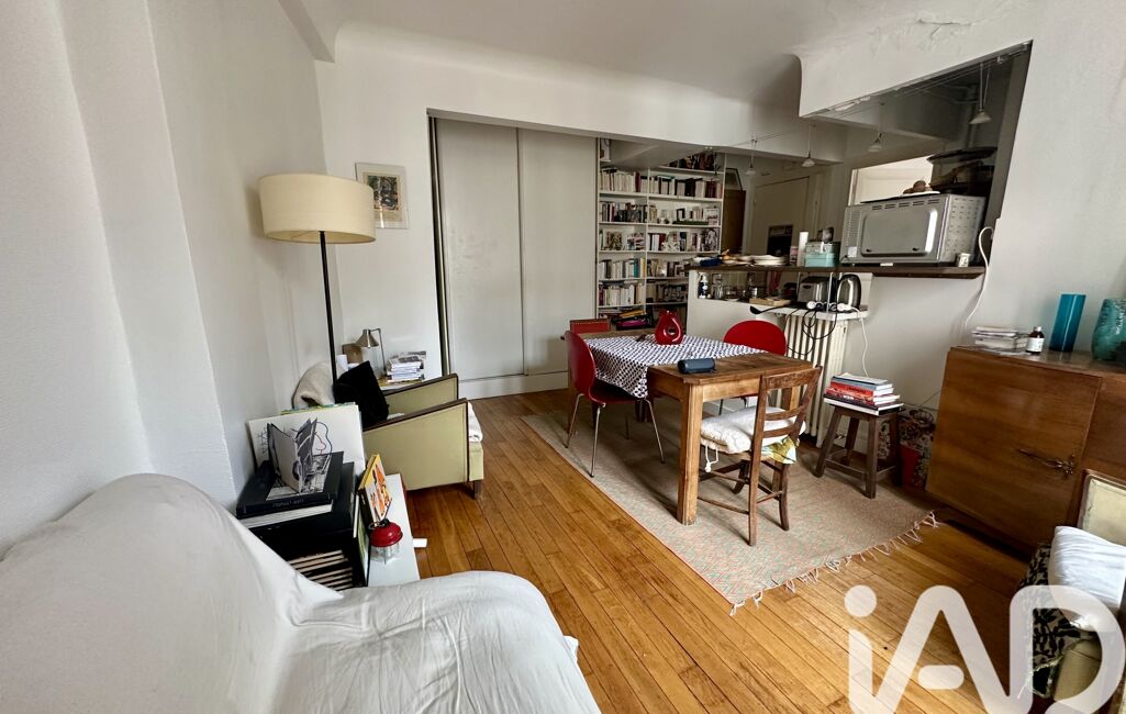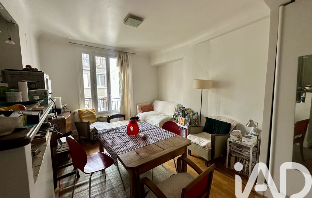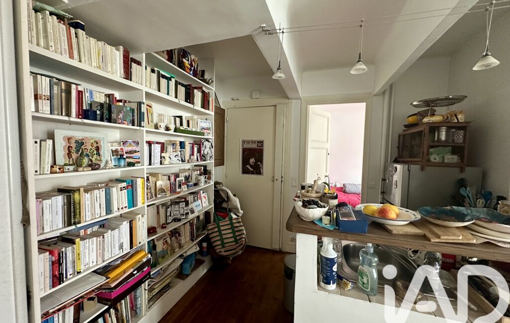 Ce bien au caractère typiquement parisien offre un séjour avec une cuisine ouverte (23m2 environ), une chambre (11,48m2) et une salle d’eau (2,89m2).