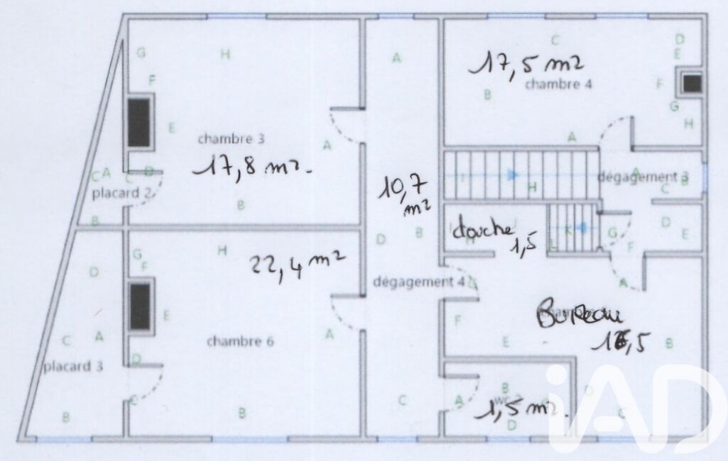3 grande chambres , couloir et une pièce traversante avec douche (idéal bureau ou espace détente).