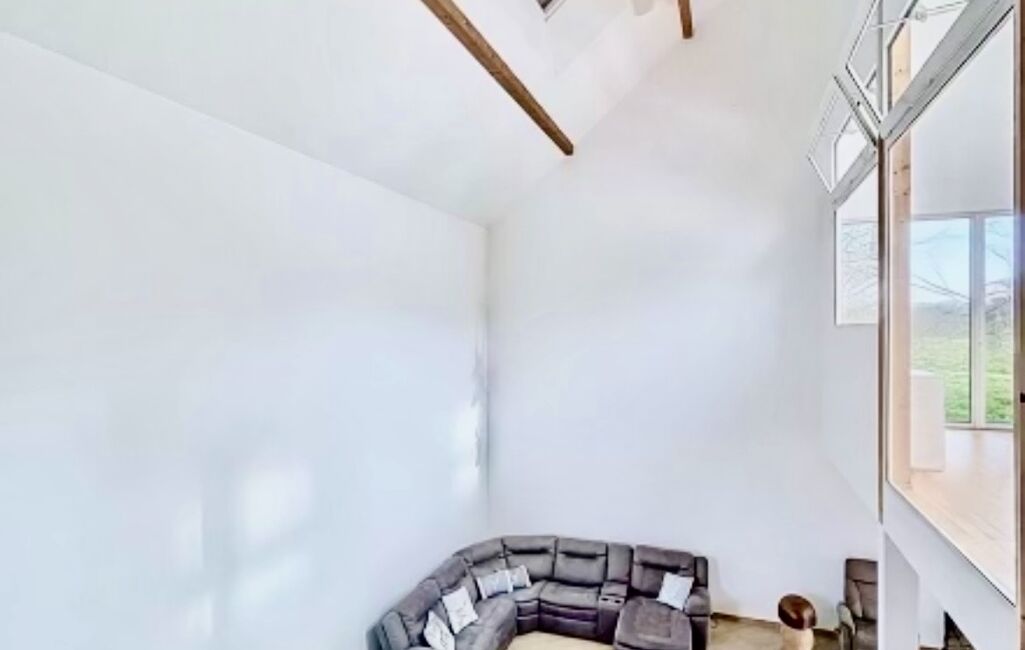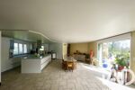 En souplex vitré et donnant sur le jardin et la piscine, vous profiterez d'une grande salle de réception de 80m2 environ avec son superbe toit cathédrale.