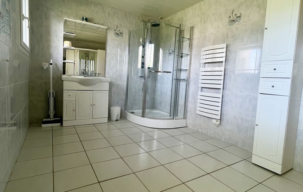 À l'intérieur, la demeure propose des espaces de vie généreux et lumineux. Au rez-de-chaussée, une entrée vous accueille et vous accompagne vers une grande cuisine aménagée et équipée ouverte sur le double séjour, puis vers une chambre parentale avec sa salle de douche privative et son toilette fermé, mais aussi vers deux grandes chambres supplémentaires, une salle de douche avec espace buanderie et un WC séparé. Un coin détente, équipé d'un jacuzzi, largement vitré et ouvert sur l'extérieur, complète ce niveau.