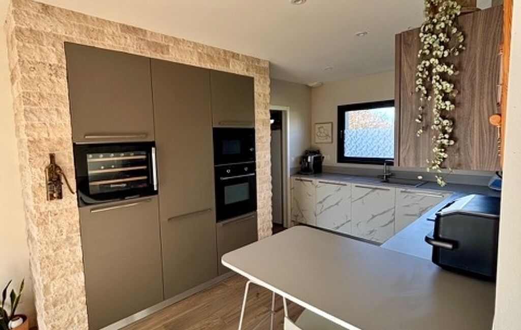 • La pièce de vie d'environ 64 m², baignée de lumière, accueille un salon-séjour chaleureux, ouvert sur une cuisine moderne entièrement équipée (électroménager encastré, cave à vin, hotte avec extraction extérieure). Un espace idéal pour recevoir et partager de beaux moments en famille.