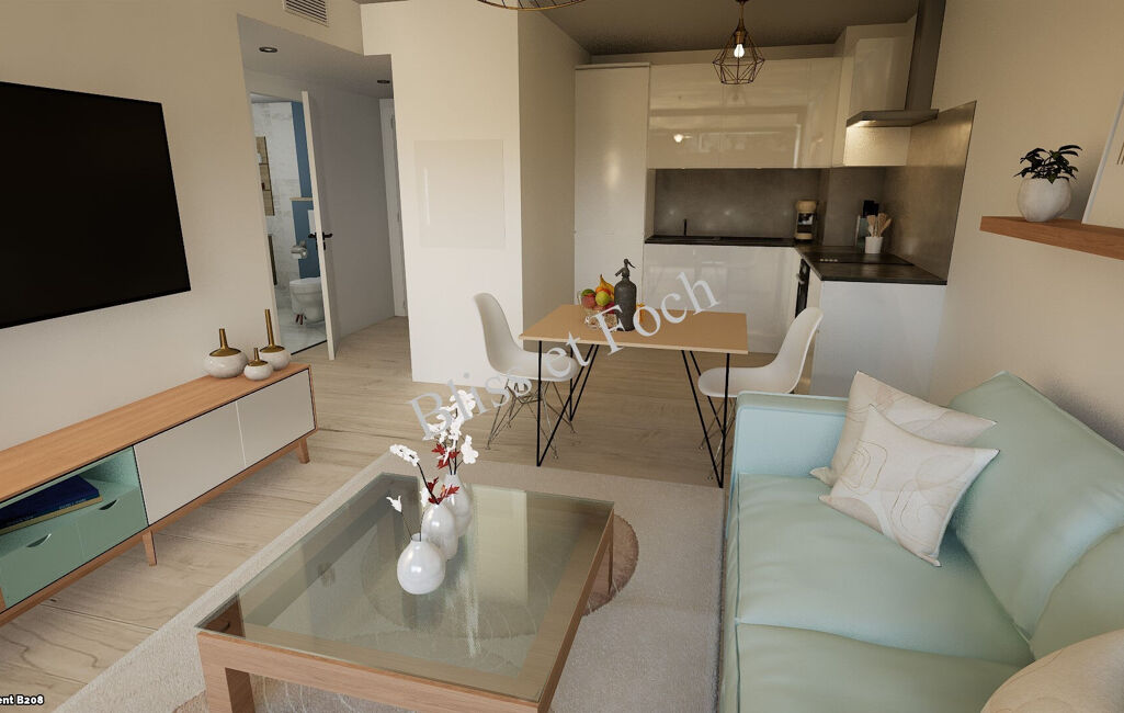 Dans une résidence neuve de très haut standing en plein centre-ville d'Anglet, superbe appartement 2 pièces de 42.58 m² en rez de chaussée. Entrée / salon / cuisine de 25.61 m² avec accès terrasse de 7.57 m², une chambre, salle de bains ou salle d'eau et wc.