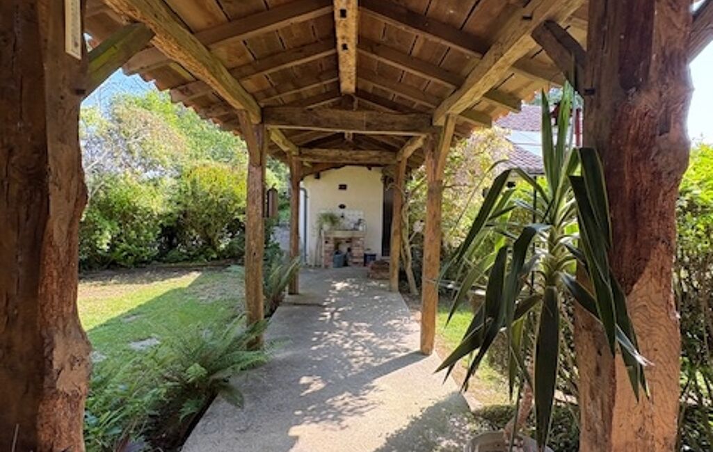 iad France - Pierre Salles vous propose: Idéalement située sur la commune de Bahus Soubiran, à proximité d’Aire-sur-l’Adour, Geaune et Eugénie-les-Bains, cette charmante maison landaise est nichée dans un écrin de verdure, sans aucun vis-à-vis, vous garantissant un calme absolu.