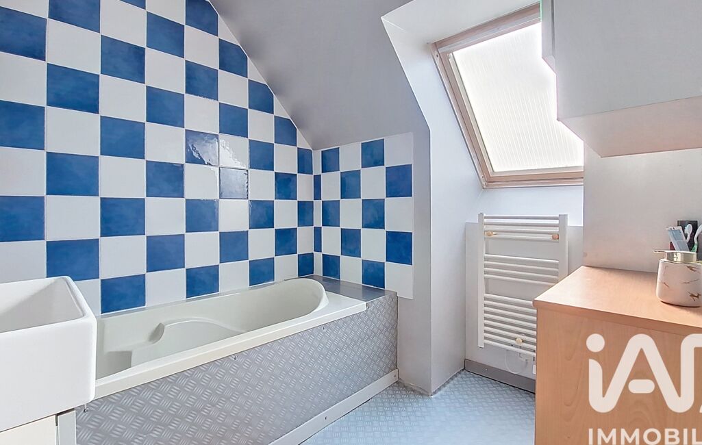 A l'étage, il y a un palier qui dessert trois chambres, une salle de bain avec baignoire et un WC.