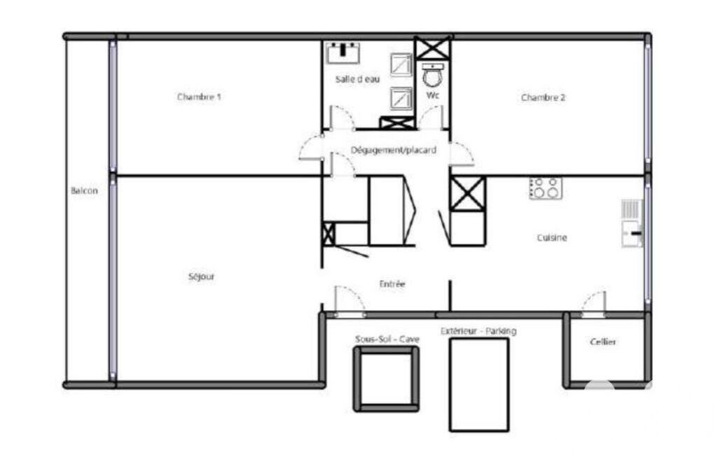 Il se compose d’une entrée avec espace de rangement, d’un séjour lumineux donnant sur un balcon filant, d’une cuisine aménagée avec son cellier attenant, d’un couloir distribuant deux chambres spacieuses, une salle de douche et un WC séparé.
