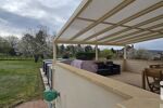 Vous pourrez profiter des beaux jours sur la terrasse couverte de 26m² surplombant la piscine creusée et chauffée ou sur le balcon devant la maison, tous deux bien exposé. Le jardin, entouré de verdure, sera l'endroit idéal pour des moments de détente en famille ou entre amis.