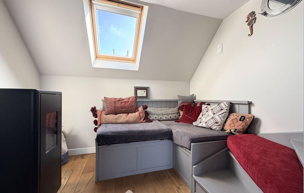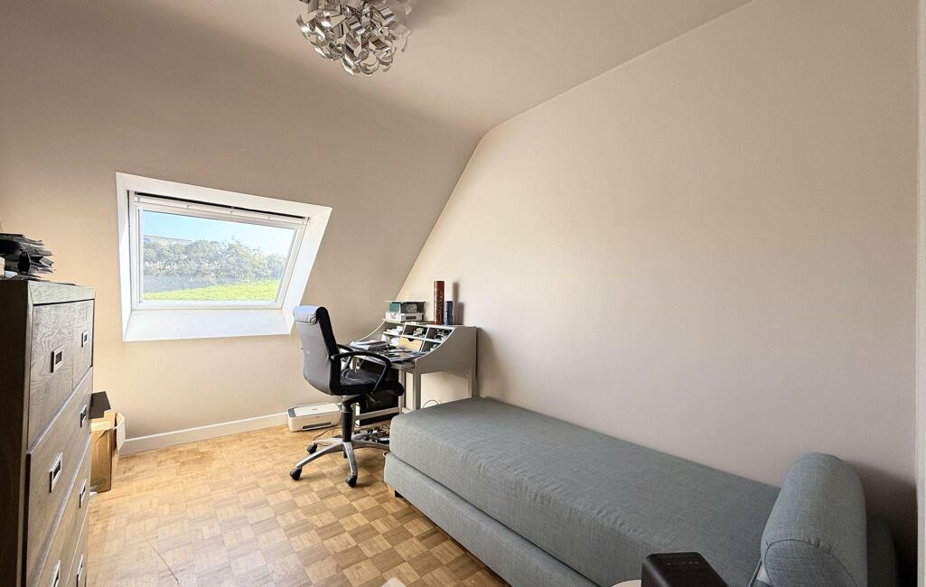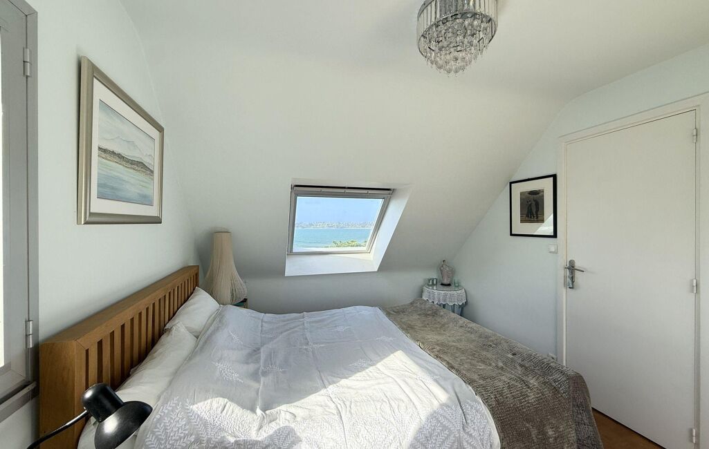 Ce niveau se prolonge par un salon cosy de 16 m² avec poêle à granulés et une véranda de 9m² offrant, elle aussi, une belle vue mer.