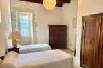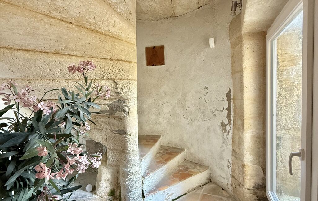 Un second espace, correspondant à l’ancienne cuisine, mène à un escalier desservant l’étage, où se trouvent trois chambres, un dressing et une salle de bain.