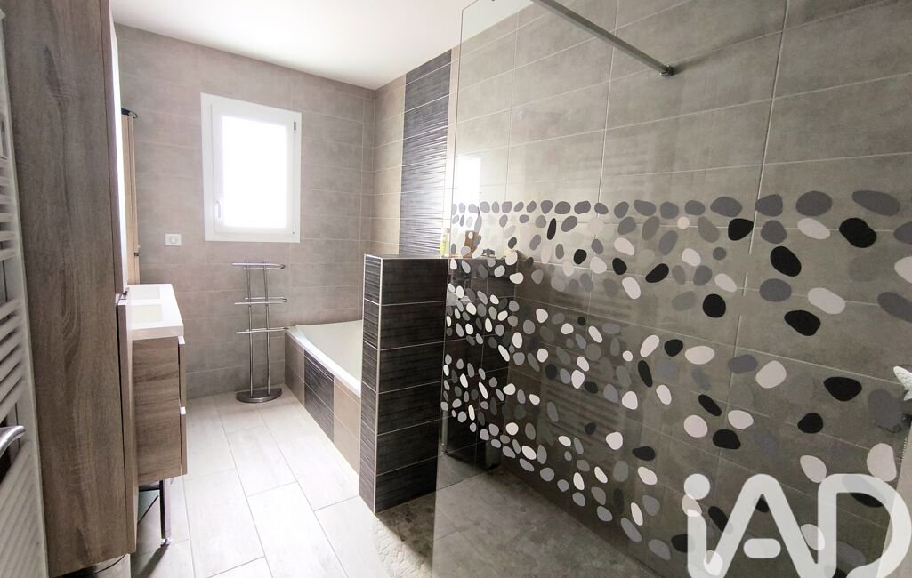 Elle vous propose un patio couvert puis une entrée avec placards, pièce de vie avec cuisine ouverte aménagée équipée, cellier - buanderie, dégagement, trois chambres avec placards, salle de bains avec baignoire et douche à l'italienne, garage avec porte motorisée.