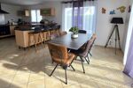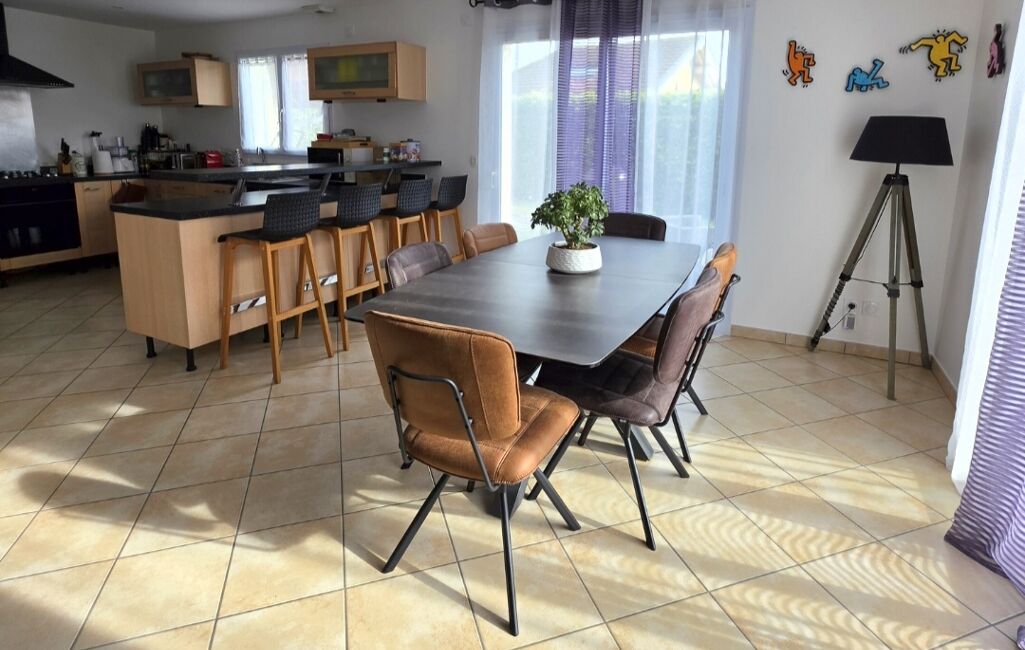 Au rez-de-chaussée, vous découvrirez une belle pièce de vie spacieuse et lumineuse, comprenant un séjour ouvert sur une cuisine entièrement équipée. Cet espace convivial donne accès de chaque côté à la terrasse et au jardin soigneusement entretenu, idéal pour profiter pleinement des beaux jours.