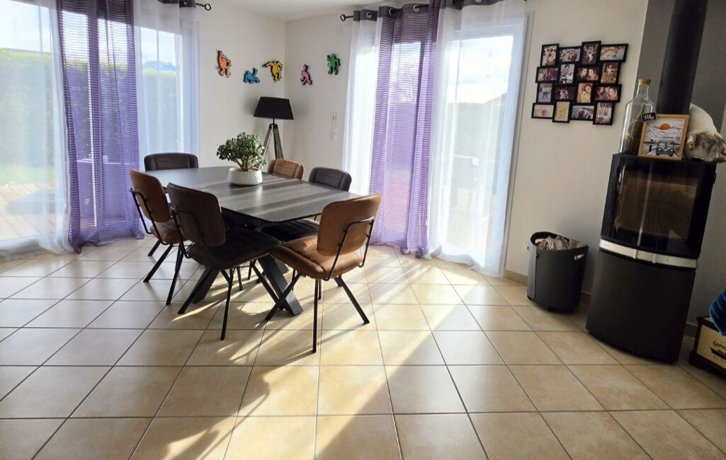 Côté confort, la maison dispose d’un chauffage au sol complété par un poêle à bois, créant une atmosphère chaleureuse et agréable.