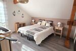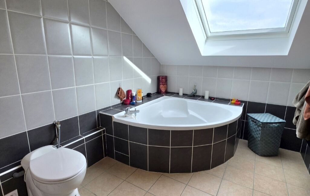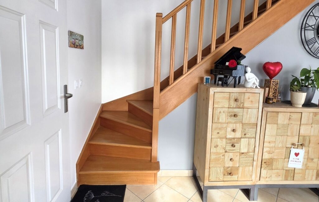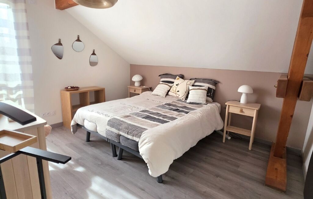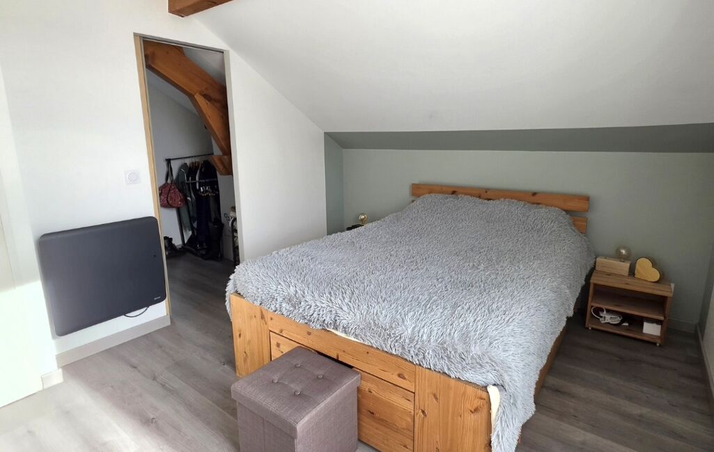 À l’étage, l’espace nuit propose trois belles chambres, dont une avec dressing et accès direct à la salle de bains, offrant confort et praticité pour toute la famille.