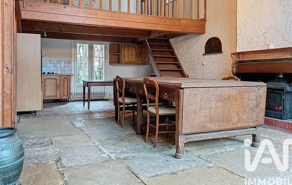 Au rez-de-chaussée : une vaste salle à manger en dalles de bourgogne, plafond à la française équipée d'une belle cheminée avec insert (30m2) ouverte sur une cuisine sol en tommettes (13m2), une splendide mezzanine surplombe ces pièces (10m2), une magnifique chambre en pierre et parquet (21m2), une pièce a finir d'aménager pouvant servir de bureau ou d'arrière cuisine (10m2) et une salle de bain avec WC (5m2).