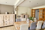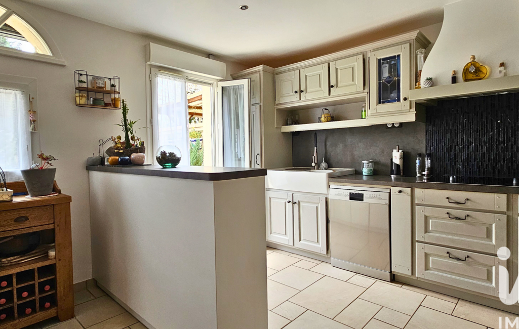 Dès l’entrée, la maison révèle tout son potentiel avec une entrée spacieuse, puis une belle pièce de vie d’environ 45 m² avec bow-window, baignée de lumière et ouverte sur le jardin exposé sud. Véritable espace de réception, chaleureux et élégant, elle offre un cadre idéal pour les moments de partage en famille. Vous y trouverez également une cheminée et la climatisation, pour un confort apprécié en toute saison.