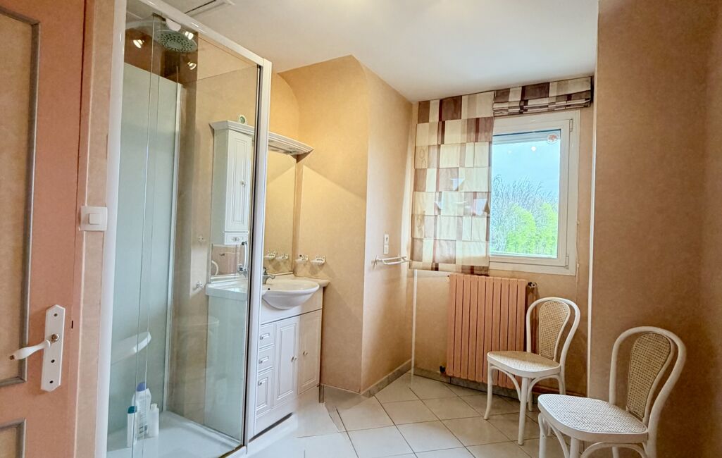 À l’étage, le palier dessert une suite parentale avec dressing et salle de douche privative, ainsi que deux autres chambres et une salle de jeux. Que ce soit pour une famille nombreuse ou pour du télétravail, chaque membre de la famille y trouvera son indépendance.