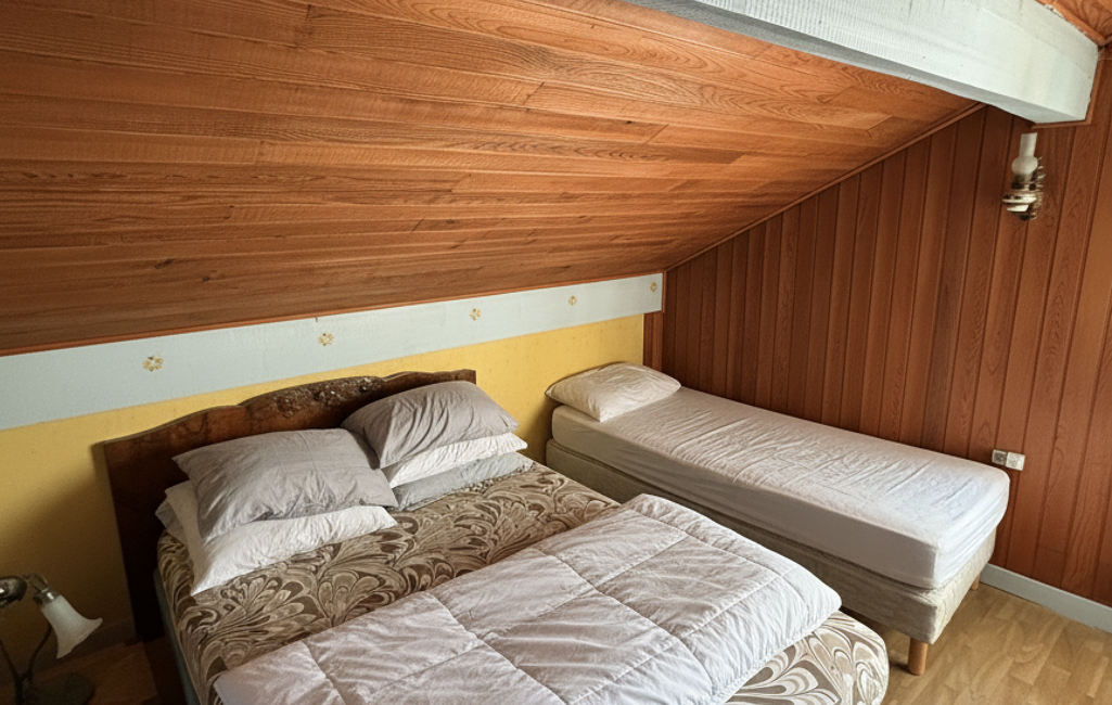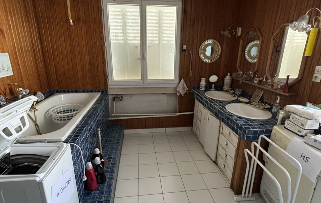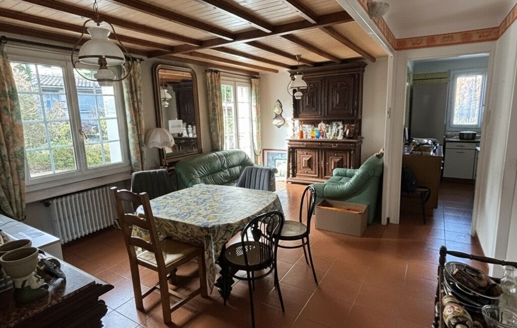Vous découvrirez lors d'une visite un hall d'entrée depuis une petite vérandas qui dessert une séjour, une salle à manger avec un accès sur une terrasse à l'abri des regards, une cuisine équipée avec une arrière cuisine servant de cellier, deux chambres, une salle de bains avec baignoire et douche et équipées d'un meuble double vasque. L'étage offre une surface de 32 m2 répartie avec deux chambres sous rampants, un espace salle de jeux et un wc. Le sous-sol complet dispose d'un coin atelier, cave, buanderie, garage. Le terrain de 600 m2 est clos et arboré avec un abris de jardin. Le chauffage est au gaz de ville avec une chaudière de 2025. A visiter très vite