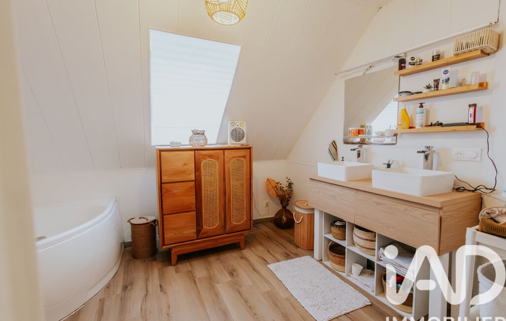 À l’étage, un joli palier dessert trois belles chambres, un bureau ainsi qu’une salle de bain avec cabine de douche et baignoire d’angle. Les combles aménagés offrent un espace supplémentaire modulable selon vos besoins.