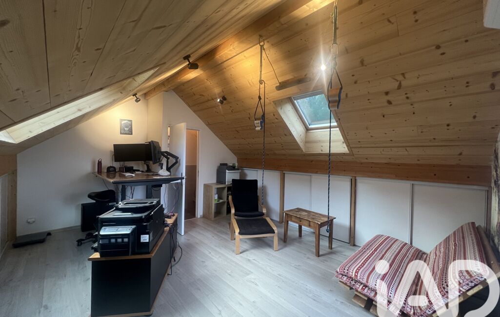 Le garage est complété par un espace aménagé au-dessus, transformé en pièce à vivre supplémentaire d’environ 15 m² Loi Carrez et 28m2 au sol avec clim réversible, idéale pour un bureau, une salle de jeux ou un studio indépendant.