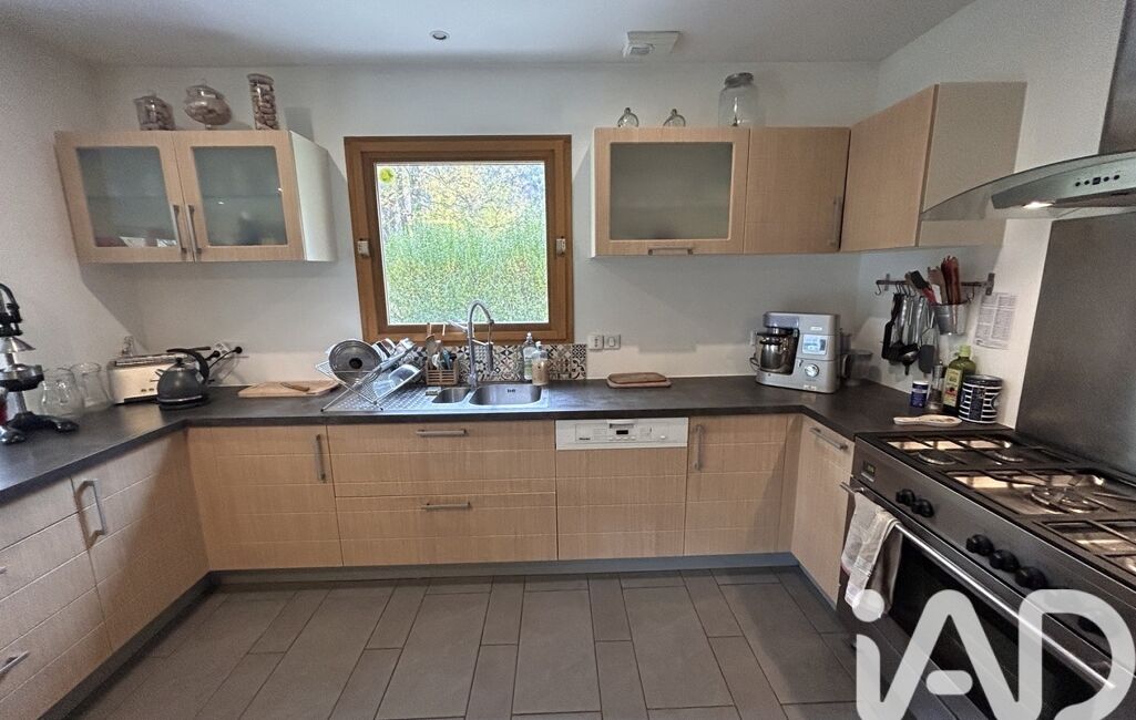 La cuisine ouverte s’intègre harmonieusement à l’espace de vie, idéal pour recevoir.