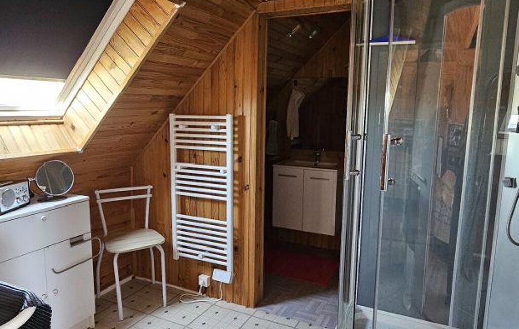 Le premier étage est composé de divers espaces, un bureau en mezzanine , une chambre parentale avec sa salle d'eau et WC ainsi qu'une pièce fermée pouvant faire office de bureau ou chambre d'enfant.