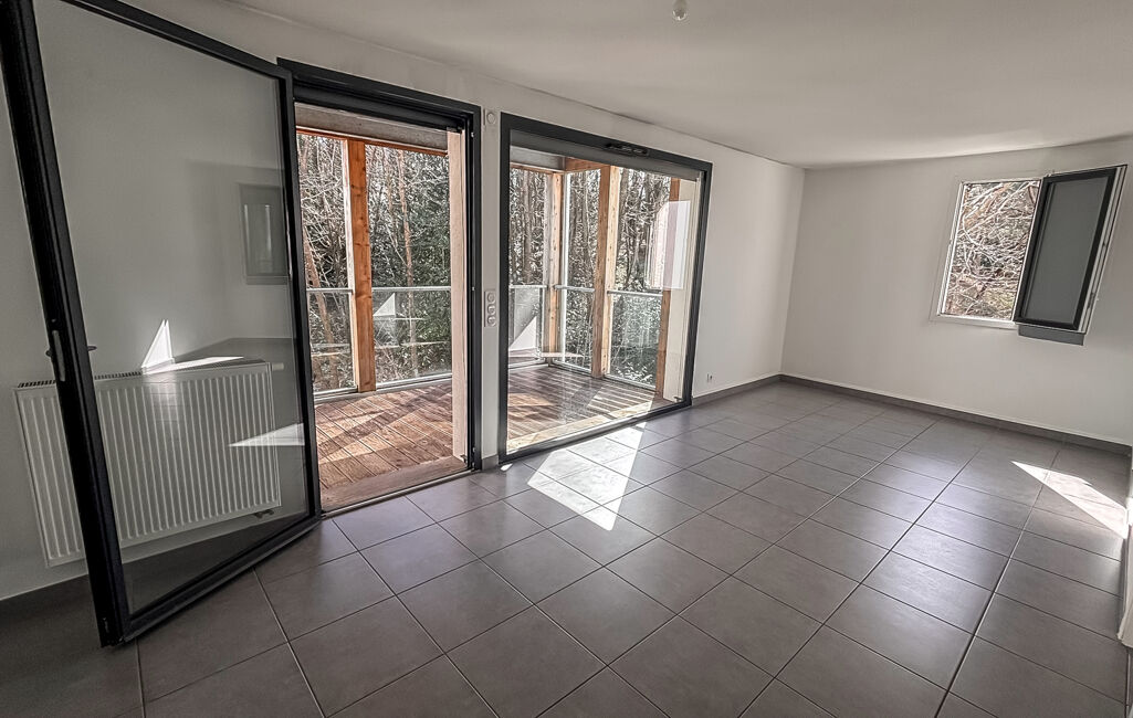 Dans un environnement calme et proche de toutes les commodités, découvrez ce spacieux T2 de 46 m² (45,36 m² loi Carrez) situé au 3 ième étage d'une résidence récente de 2016, avec terrasse couverte plein sud vue sur la foret, sans vis à vis.
