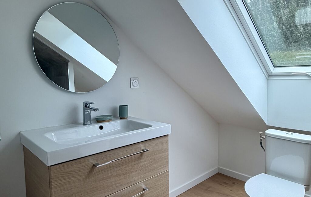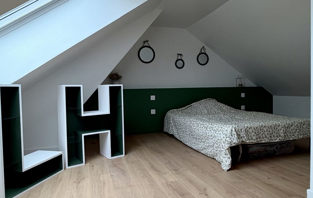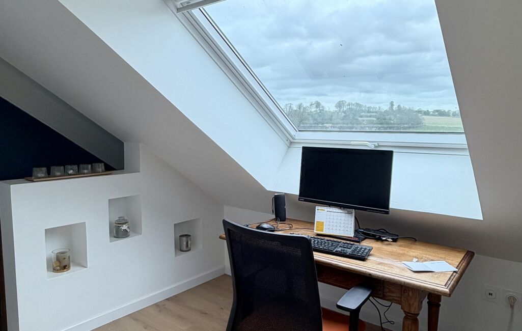 À l’étage, deux chambres confortables dont une chambre parentale avec salle de douche et WC. Un espace bureau/palier complète ce niveau, parfait pour le télétravail ou un coin lecture.
